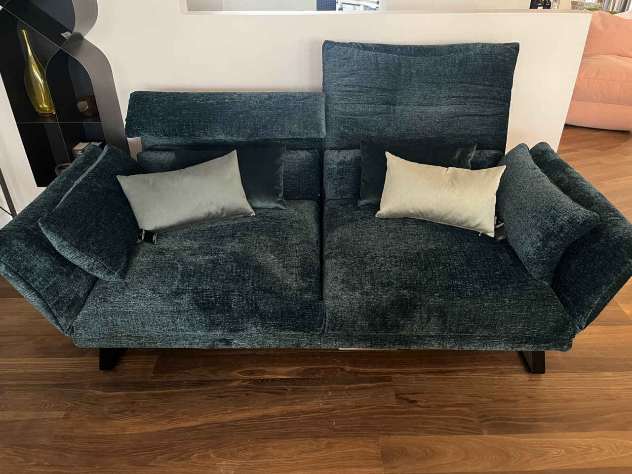 Die einzelnen Sitzelemente lassen sich ganz einfach variabel eindrehen und ermöglichen verschiedene Positionen. Die mehrstufig abklappbaren Armlehnen dienen gleichzeitig als Armstütze oder als Fußablage. Clou ist ein Funktionssofa mit präziser Linienführung, einer soften Polsterung und durchdachte Funktionen. Es ist auch als Schlafmöglichkeit geeignet.
