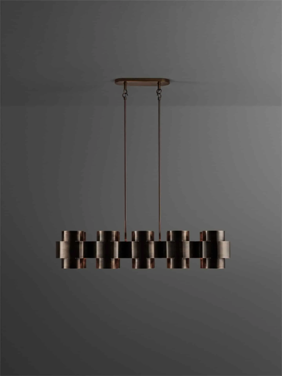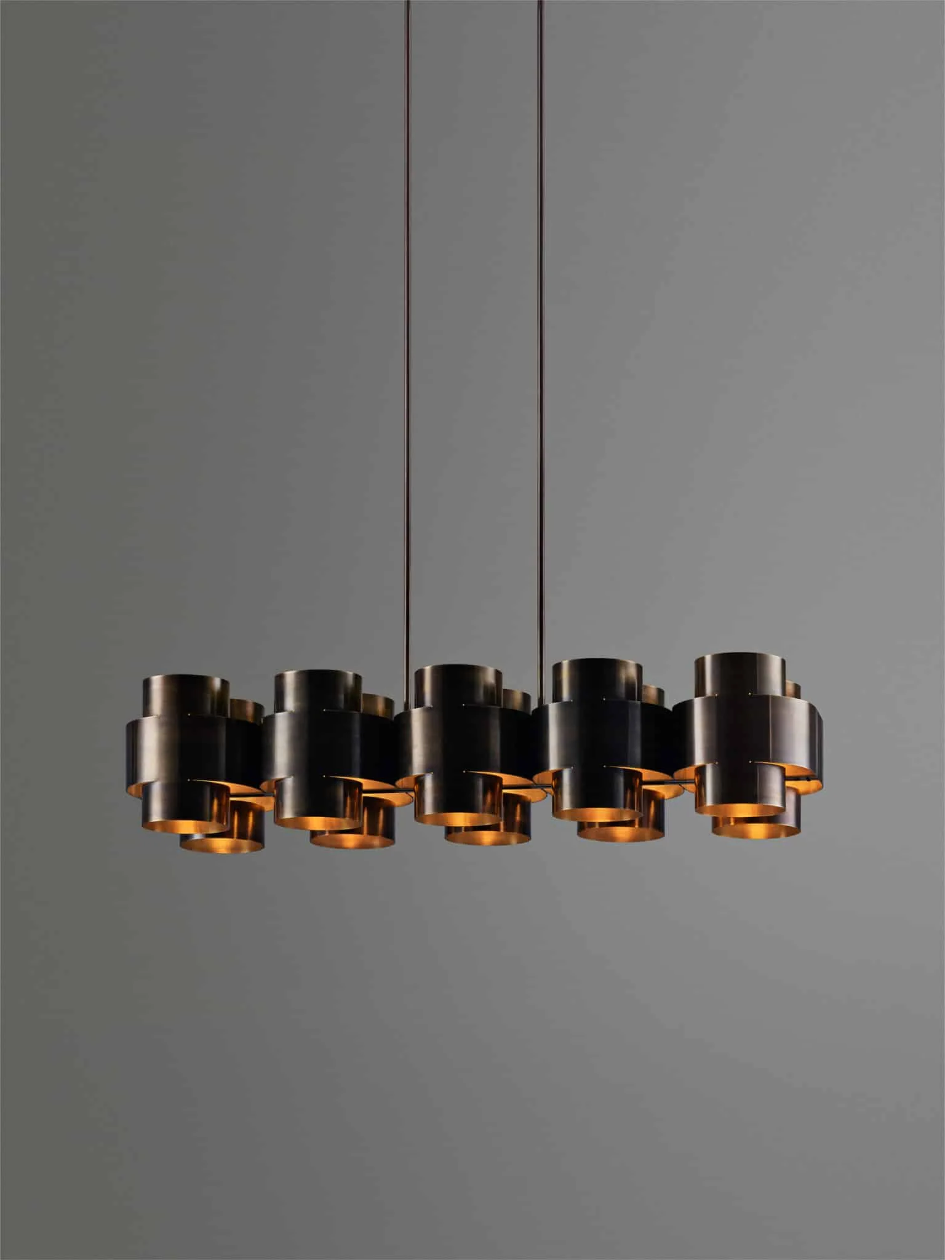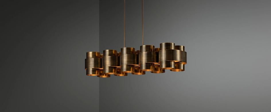 Die PLUS Serie ist eine neue Pendelleuchtenserie von Paul Matter, die sich durch ihre schlichte Form in einzelnen, sich wiederholenden Anordnungen auszeichnet. Die dreidimensionale Plus-Form entsteht aus einem einzelnen Messingrohr, das geschnitten, gebogen und anschließend von Hand bearbeitet wird. Die darin eingebettete Lichtquelle strahlt sanfte Lichtstrahlen aus und unterstreicht die außergewöhnliche Konstruktionstechnik. Die kompakte Form lässt sich vervielfachen, um größere Leuchten und individuelle Wandbehänge zu gestalten. Ausführungen in gebranntem, gealtertem, poliertem Messing.
