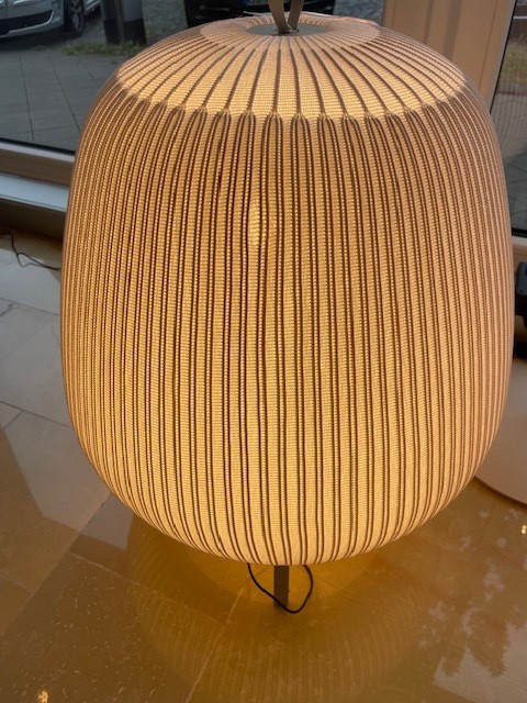 Die Stehleuchte Knit strahlt ein sanftes und umhüllendes Licht aus, das den Raum in ein intimes Refugium verwandelt. neben einem Sofa oder in einer Leseecke platziert, bringt sie eine emotionale Wärme, die zur Ruhe und Verbindung einlädt.
