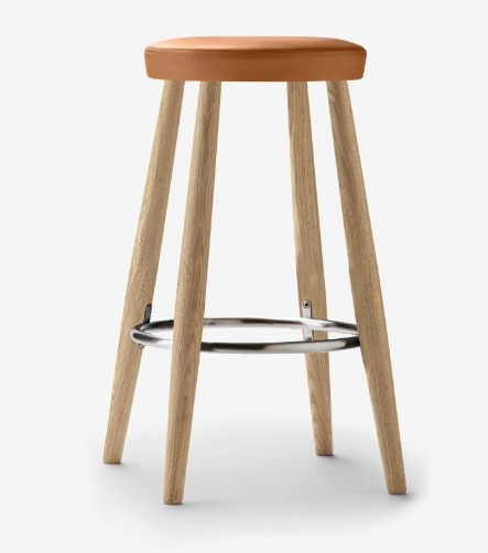 Obwohl Hans J. Wegner den Barhocker CH58 bereits vor Jahrzehnten entworfen hat, passt das zeitlose Design auch heute noch gut in moderne Küchen, Bars und Restaurants. Mit seinen leicht gewinkelten Beinen und dem runden, gepolsterten Sitz schafft der Hocker eine einladende Atmosphäre für entspannte Momente. Der runde Edelstahlring des CH58 Bar Stools, der die vier Beine miteinander verbindet, ist praktischerweise so platziert, dass man die Füße bequem unter dem Sitz abstützen kann. Die Konstruktion bietet optimale Stabilität, wobei die Beine in typischem Wegner-Stil an der Verbindung zum Ring am stärksten sind und sich sowohl in Richtung Boden als auch zum Sitz hin verjüngen.