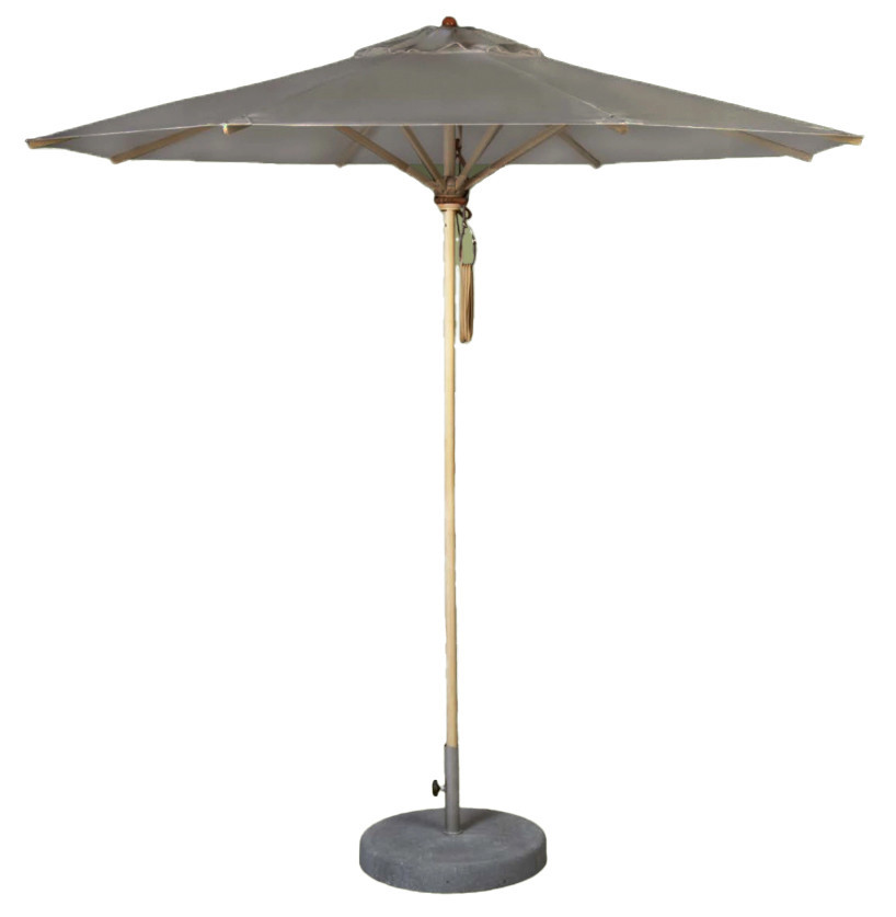 Schirm KLASSIKER 250 cm Drm. ACRYLTUCH Taupe mit Flaschenzug und Knickmechanismus mit Bodenplatte Beton grau gesandet 35 kg rund, Hülse Edelstahl 40 mm Drm. und Schutzhülle.