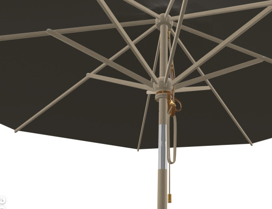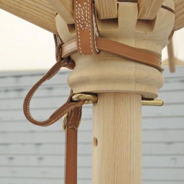 Der Klassiker Schirm ist oberflächenimprägniert, seine Bespannung wasserabweisend und gegen Fäulnis ausgerüstet. So hält er problemlos kurzen Regenschauern stand. Um ihn gegen Böen zu wappnen, haben wir ihn mit einer Lufthaube versehen.