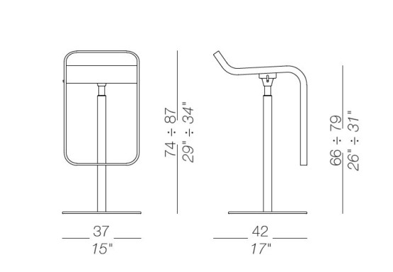 und Frontposition. Metallgestell, matt verchromt oder pulverlackiert. Gasdruckfeder matt