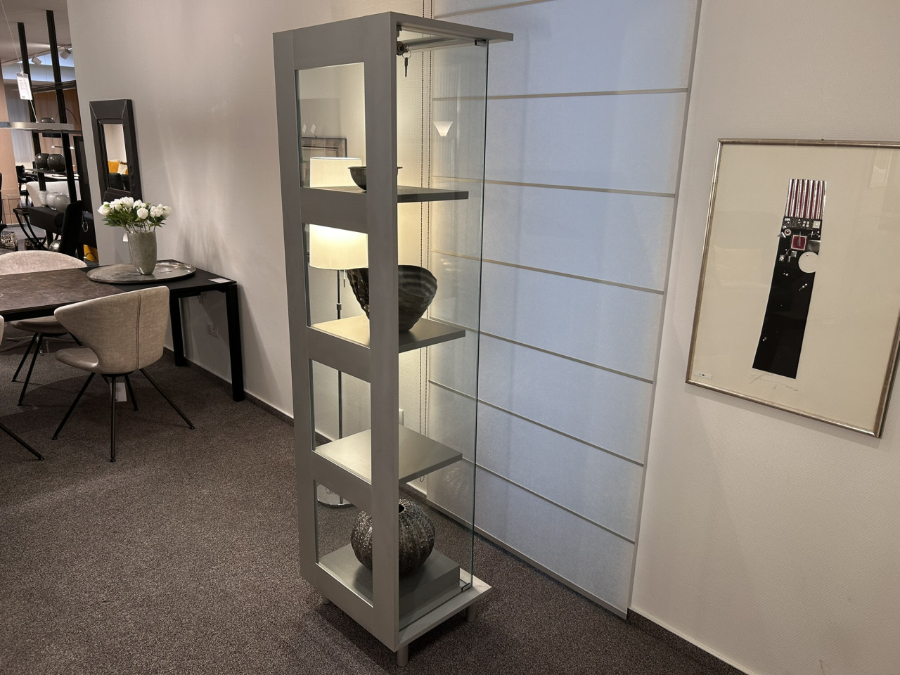 Vitrine mit 4 festen Fachböden (Abstand der Fachböden = 39 cm),
