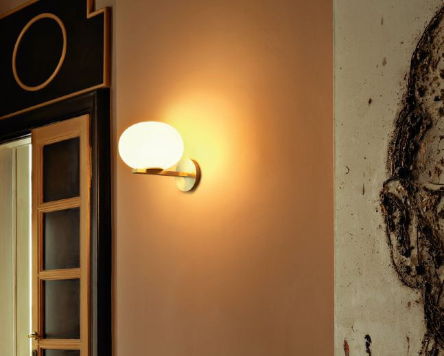 Wandleuchte ALBA 176 Glas opal,Struktur messing satiniert of milano.design