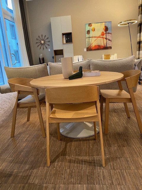 Wir verkaufen unsere Tischgruppe von Muuto aus der Ausstellung.