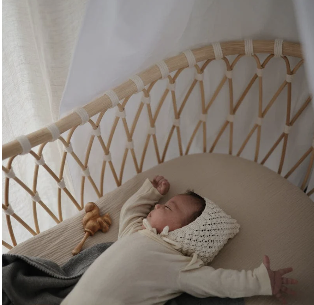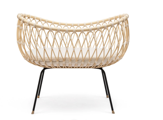 Mit dem Stubenbett EMIL ergänzt BERMBACH Handcrafted die Auswahl der Produktpalette um eine kunstvoll verspielte Designvariante, die sich vor allem durch die kreuzförmig geflochtenen Rattanstäbe des Bettchenkorbes auszeichnet.