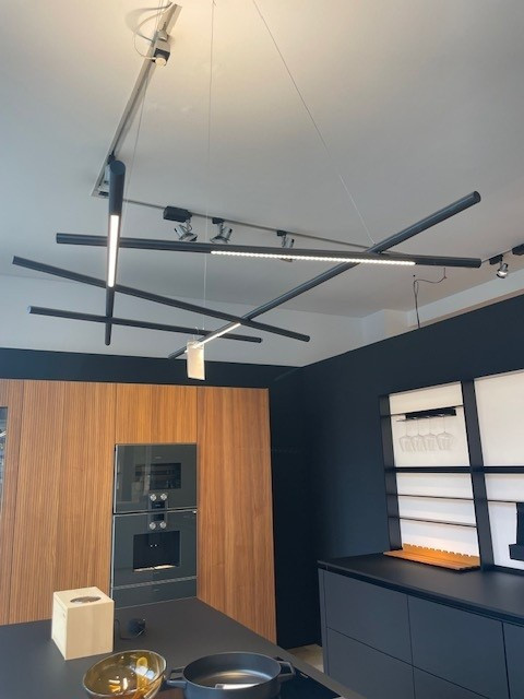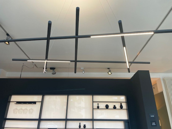 Die Montage der Pendelleuchte erfolgt mit einem Deckenbaldachin und 4 stromführenden Seilen.