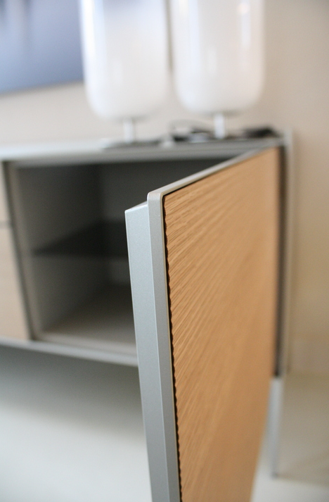 Die Rimadesio-Technologie hat es ermöglicht, den Gasöffnungsmechanismus unsichtbar zu machen. Dieses exklusive System gewährleistet gedämpfte und leise Bewegungen. Die Tür zeichnet sich durch ein durchgehendes Umfangsprofil aus, das in einer exklusiven Produktionstechnik hergestellt wird.