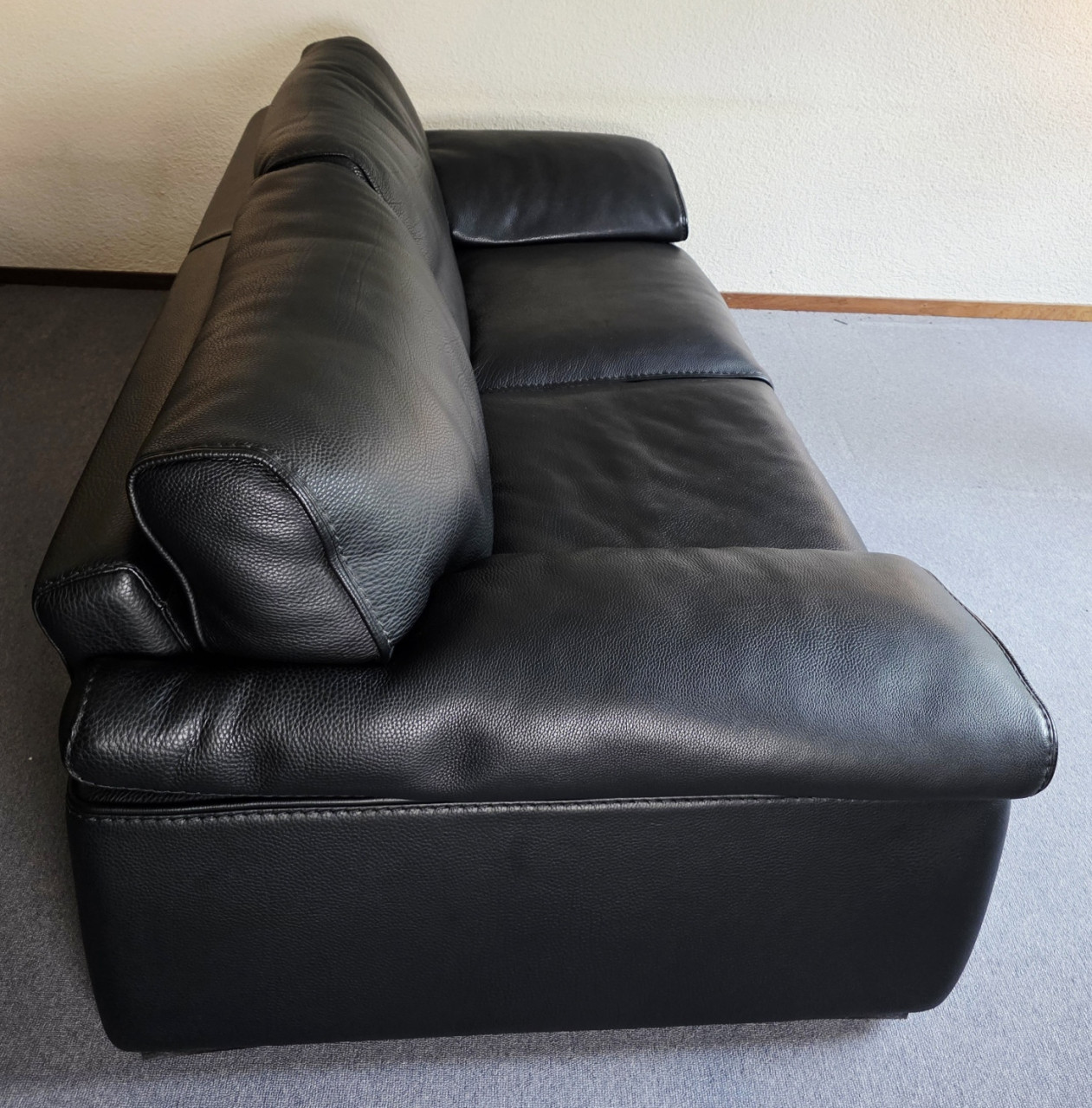 Dieses elegante Sofa von der Firma Roche Bobois hat den Modellnamen ASCOT. Es handelt sich um ein 3Sitzersofa mit einem aussergewöhnlichen Leder. Das Leder ist besonders dick, stabil und strapazierfähig.
