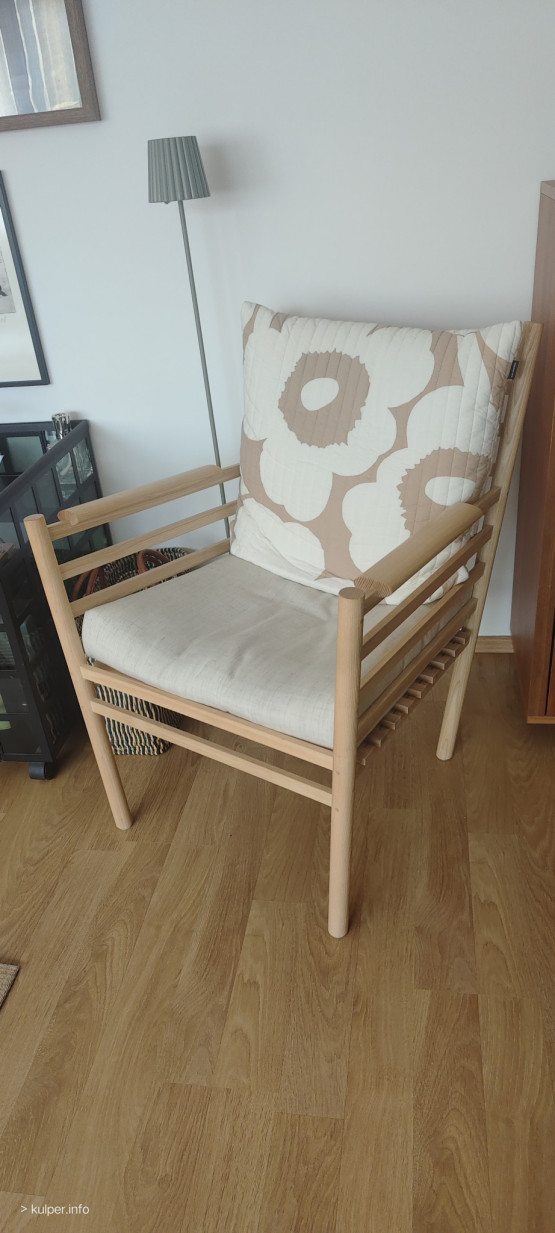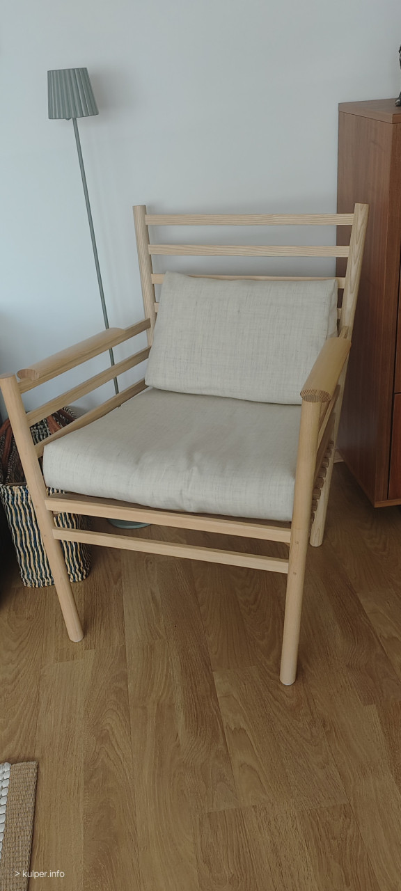 Gefertigt wird der Sessel von Nikari Oy, einer traditionsreichen Werkstatt in Fiskars, die seit 1967 Designermöbel aus massivem Holz herstellt. Nikari verbindet zeitgenössisches skandinavisches Design mit nachhaltiger Produktion und handwerklicher Perfektion.