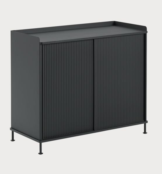 Für das Enfold Sideboard von Muuto kombiniert der Designer Thomas Bentzen gradliniges, skandinavisches Design mit industriellen Elementen. Das Sideboard eignet sich hervorragend im Wohnzimmer, kann aber auch super im Office eingesetzt werden.