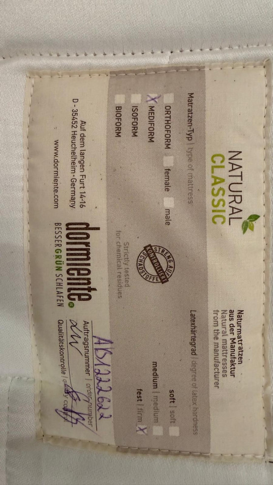 Angeboten wird die Matratze Natural Classic von Dormiente.