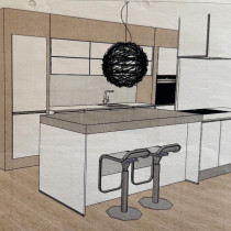 Die Gesamtlänge der Kochinsel kann auch kürzer placiert werden.