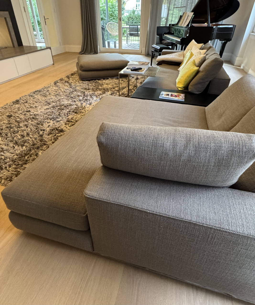 Zum Verkauf steht ein exklusives Minotti „Hamilton“ Sofa inclusive Hockerelement, ein Designklassiker mit klarer Linienführung und luxuriösem Komfort.