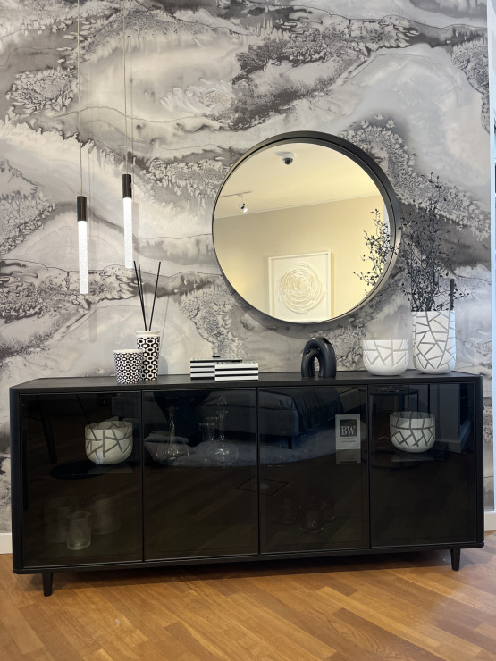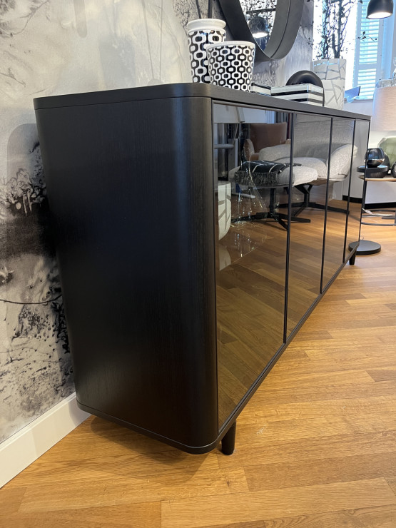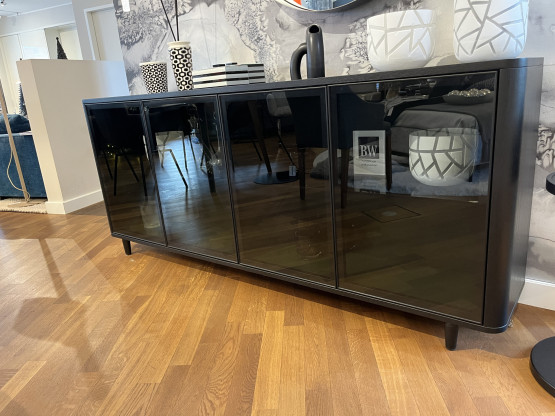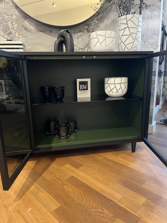 4 x Rauchglastüren (push-to-open) Aluminiumrahmen mit Rauchglas und schwarz lackierter Esche verkleidet, innen mit je einem Glasboden (ohne Innenbeleuchtung)