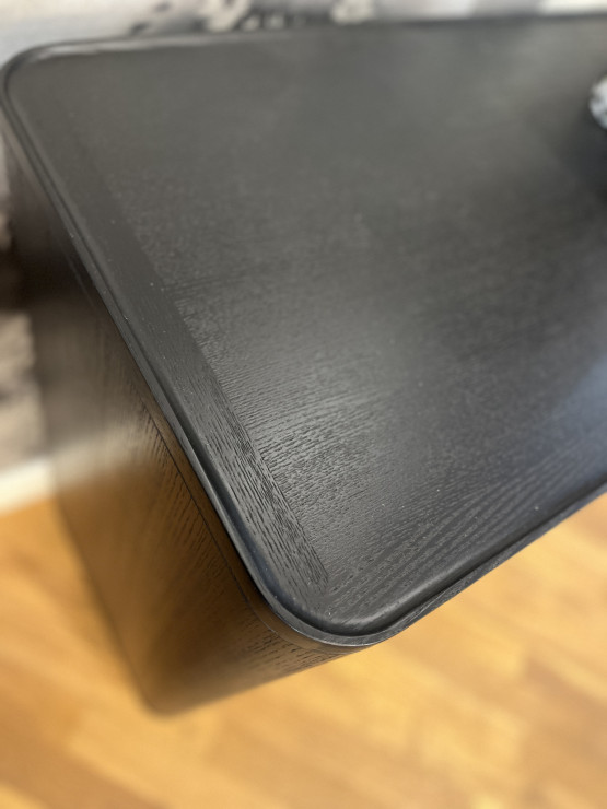 Die abgesenkte Oberfläche und abgerundeten Seiten sind aus edlem Massivholz (Eiche lackiert)