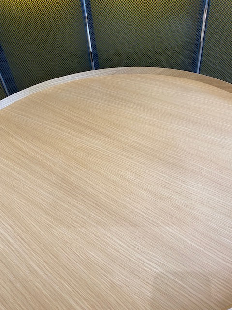 Auf der Tischplatte ist leicht ein Rechteck erkennbar, hier lagen Prospekte - der Rest wurde durch die Sonnne etwas heller - dies gleicht sich mit der Zeit an.