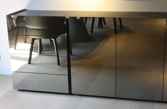 Mit dem puristischen Design bringt das Jorel-Sideboard von Interlübke Eleganz in Ihr Zuhause. Die hochwertig verarbeiteten Materialien kommen durch die minimalistische Aufmachung bestens zur Geltung. Senkrecht angeordnete Griffvouten betonen mit den nur 4 mm starken, nach oben überstehenden Fronten die vertikale Gestaltung. Das Öffnen erfolgt direkt, ohne push-to-open-Technik.