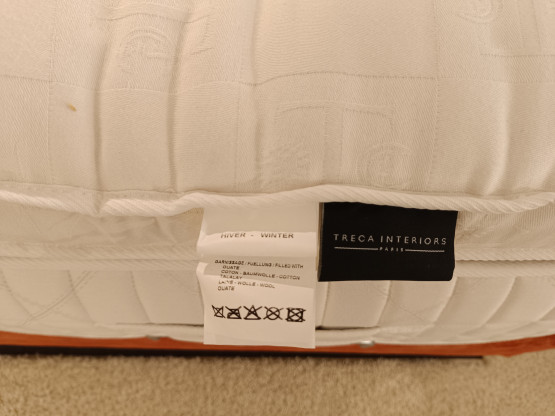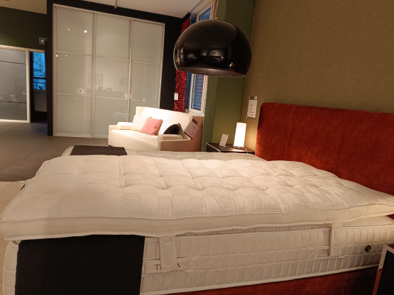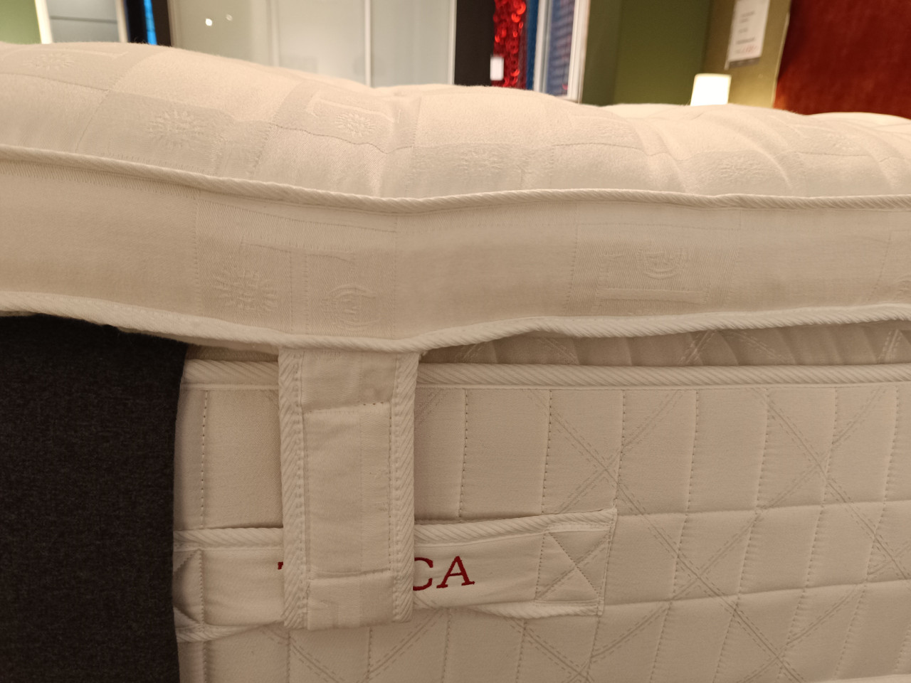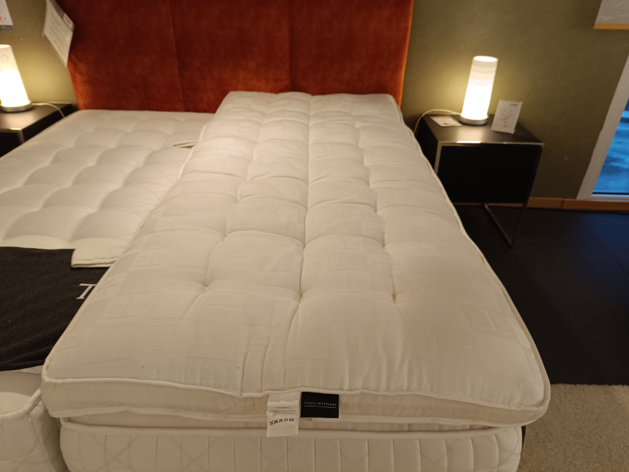 Wir verkaufen aus unserer Ausstellung die Matratzenauflage Mirabeau aus der Kollektion Treca Bezug Tip 02 mit Matratzengriff Schlaufen.