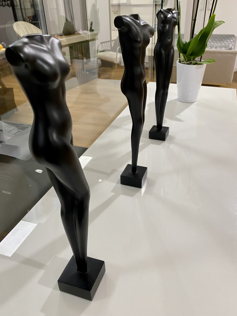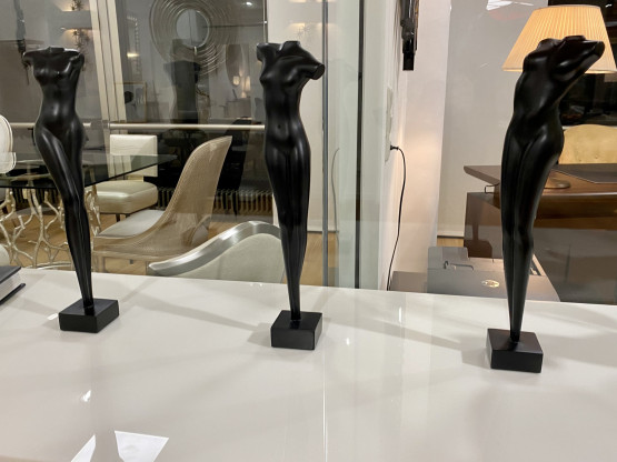 Diese Set von Figuren erinnert an die exquisiten Göttinnenstatuen des antiken Griechenlands und ist künstlerisch geformt und in Blei gegossen, wobei jede Muse elegant auf ihrem eigenen quadratischen Sockel steht. Erhältlich auch als 2er oder 3er-Set. Preis pro Stück.