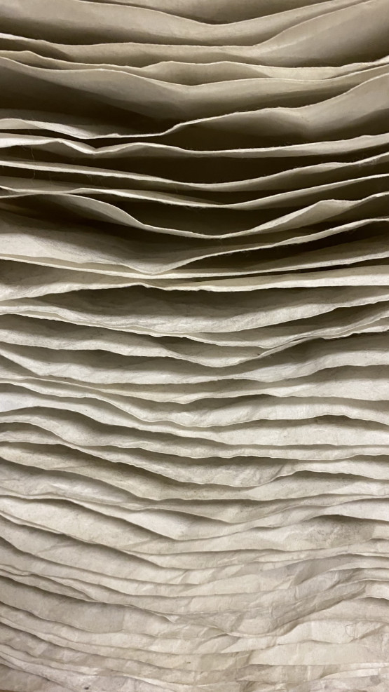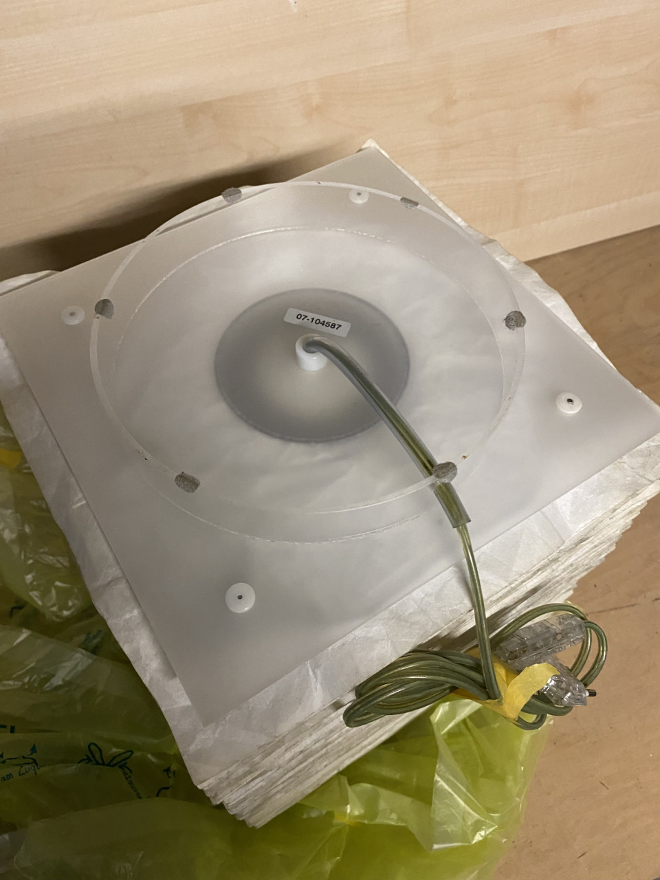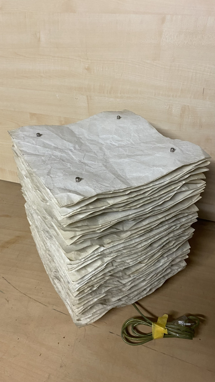 Die Leuchte aus Polyestervlies erzeugt ein stimmungsvolles Licht. Mit einer Energiesparleuchte