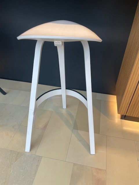 Der 404 H Barhocker von Thonet gehört zu einer eindrucksvollen Holzstuhl-Kollektion. Das Programm der 404-Reihe stammt von Designer Stefan Diez, einem der profilierteren jungen deutschen Designer. Er verbindet das Bugholz-Erbe von Thonet mit einem modernen, filigranen Look.