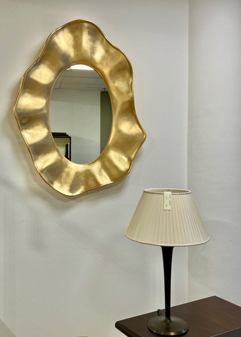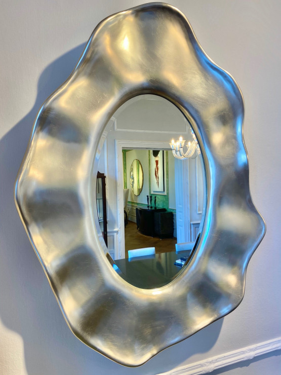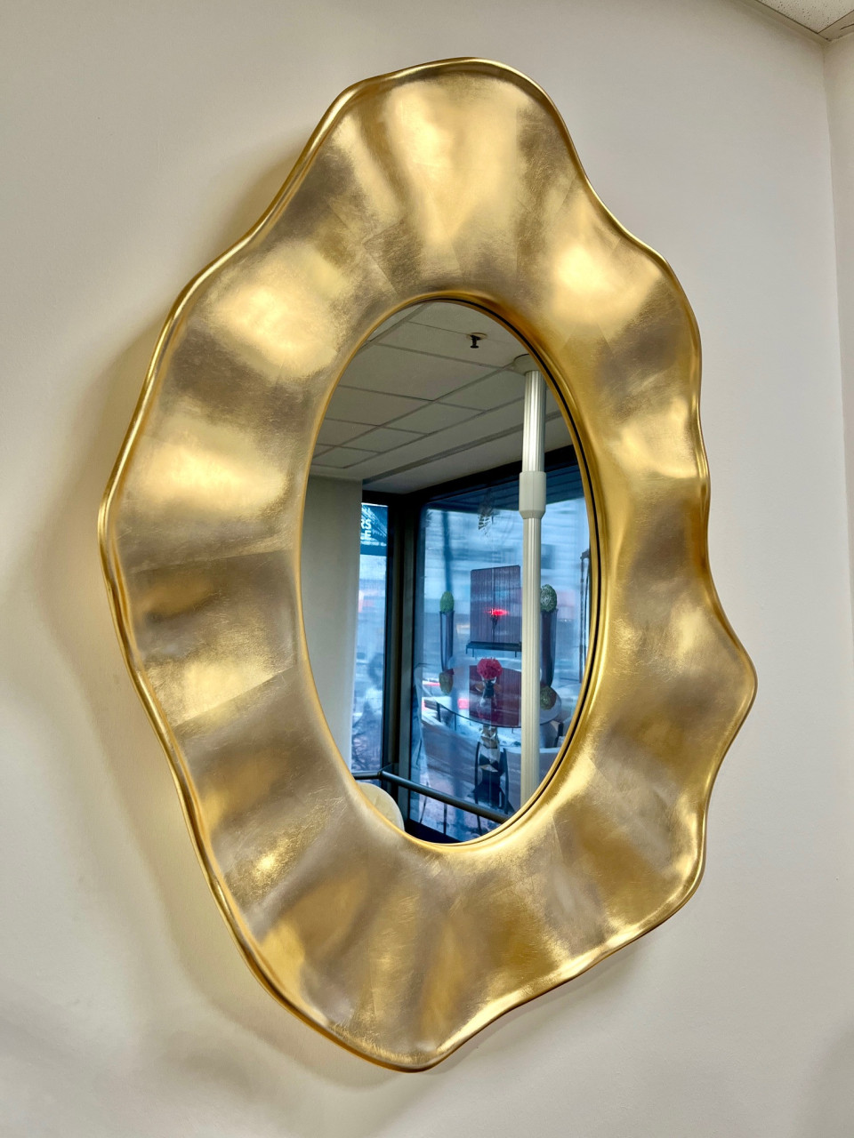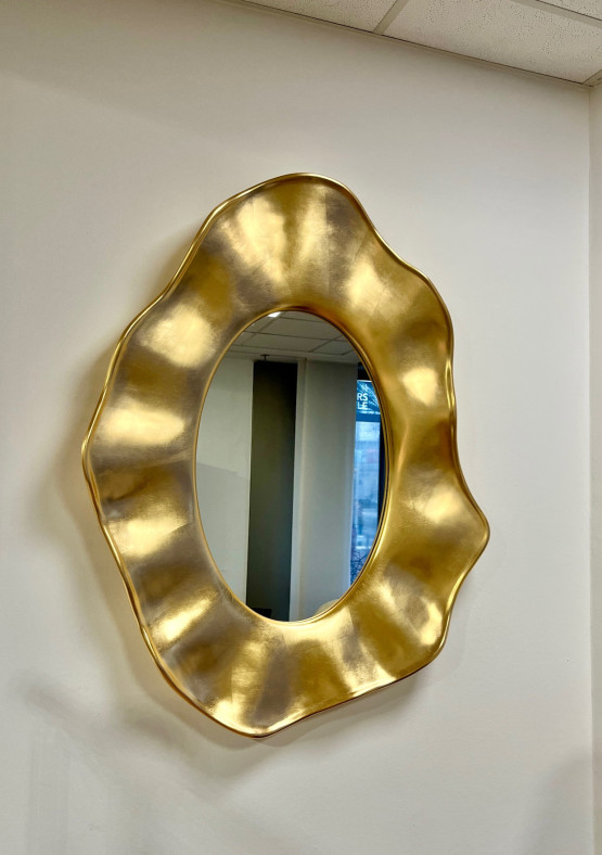 Treten Sie ein in die Welt von Christopher Guy mit diesem außergewöhnlichen Spiegelrahmen. Dramatisch geformt und elegant präsentiert, verfügt dieser handgeschnitzte Spiegel über eine unvergessliche dalieske Einfassung. Aus massivem Mahagoni und mit 21st. Cent. Gold Leaf (Blattgold) belegt. Auch in Silber und anderen Farben erhältlich.