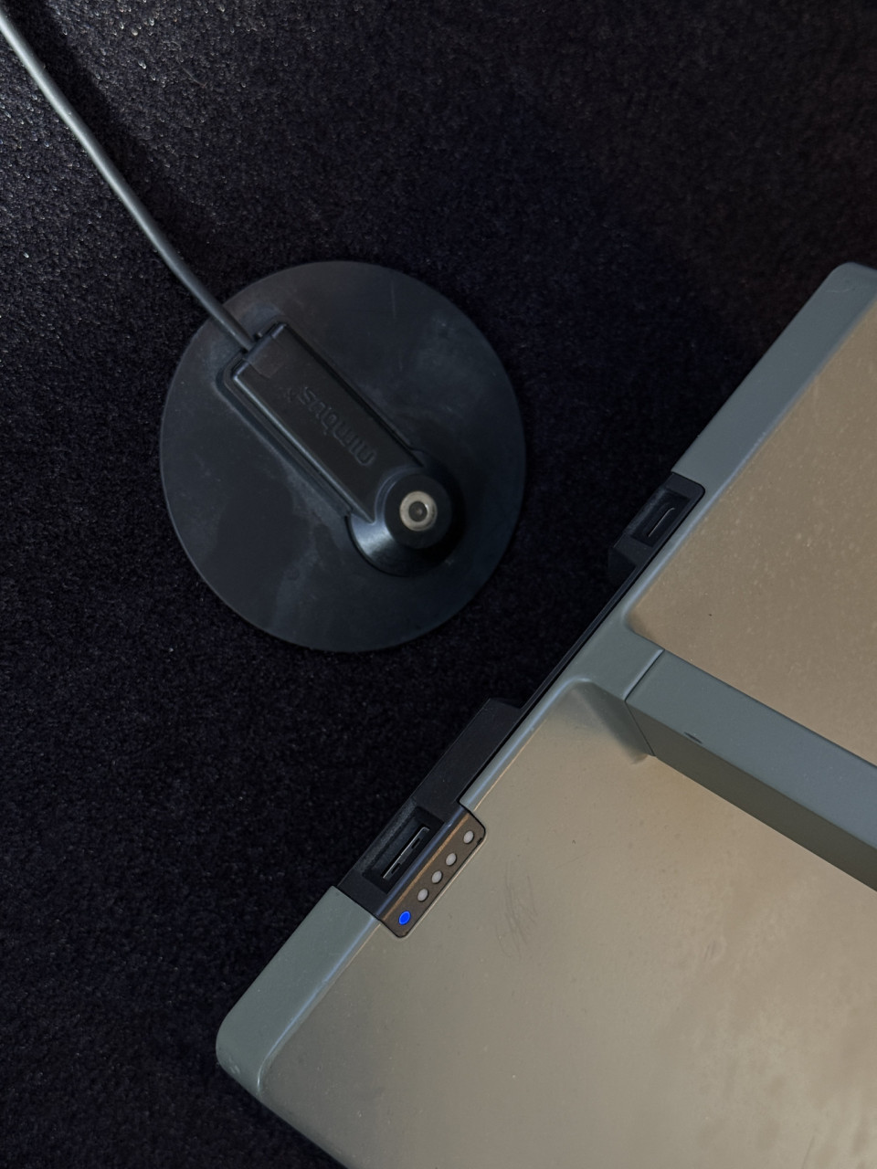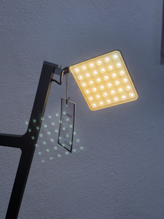 Am Fuß der Leuchte befindet sich zum einen ein USB-C-Anschluss zum Aufladen des Akkus über das mitgelieferte Kabel. An den anderen USB-A-Anschluss kann ein externes Gerät wie beispielsweise ein Tablet oder Smartphone angeschlossen werden.