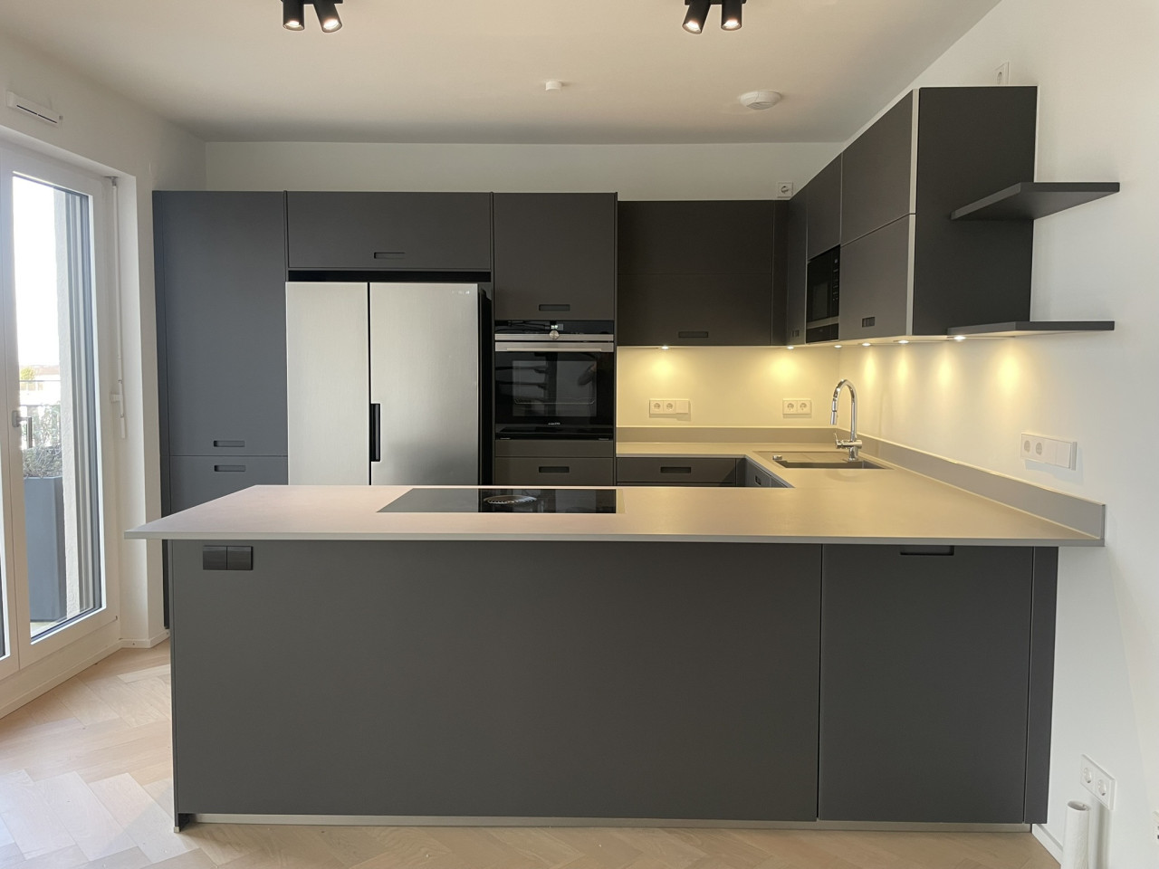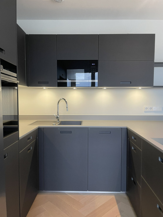 Next 125 Designerküche mit Elektro Geräten und Keramikarbeitsplatte.