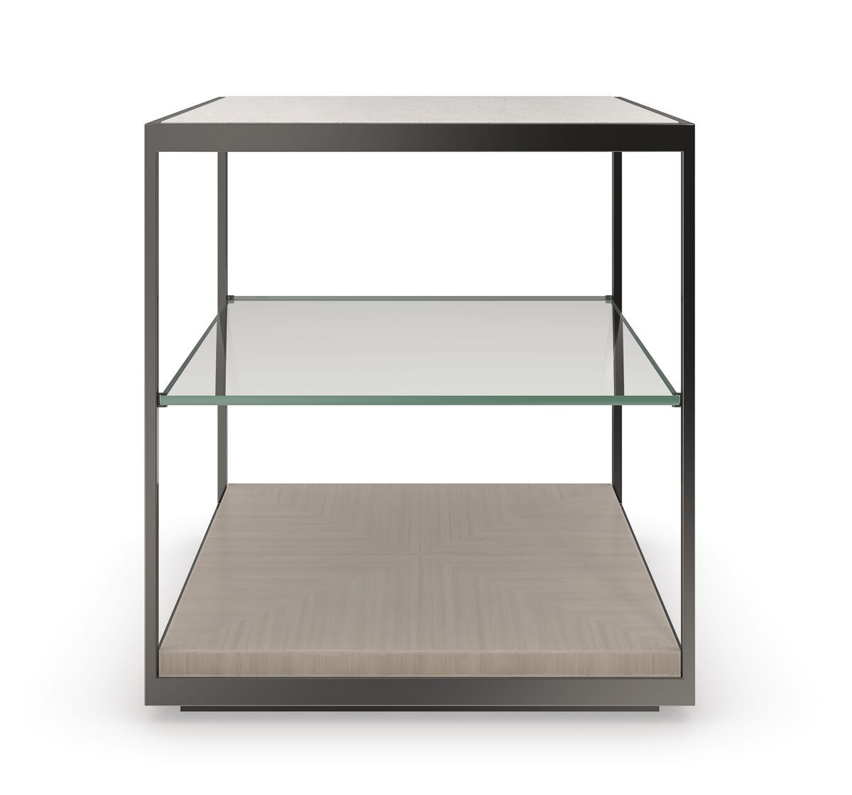 Eleganter Designer-Beistelltisch mit hochwertiger Travertin-Steinplatte und filigranem Metallgestell in Deep Bronze. Die integrierte Glasablage sowie das Bodenpaneel in Woodland Gray bieten praktischen Stauraum. Ideal als moderner Sofa- oder Sessel-Beistelltisch – luxuriös, zeitlos und perfekt für stilvolle Wohnräume.