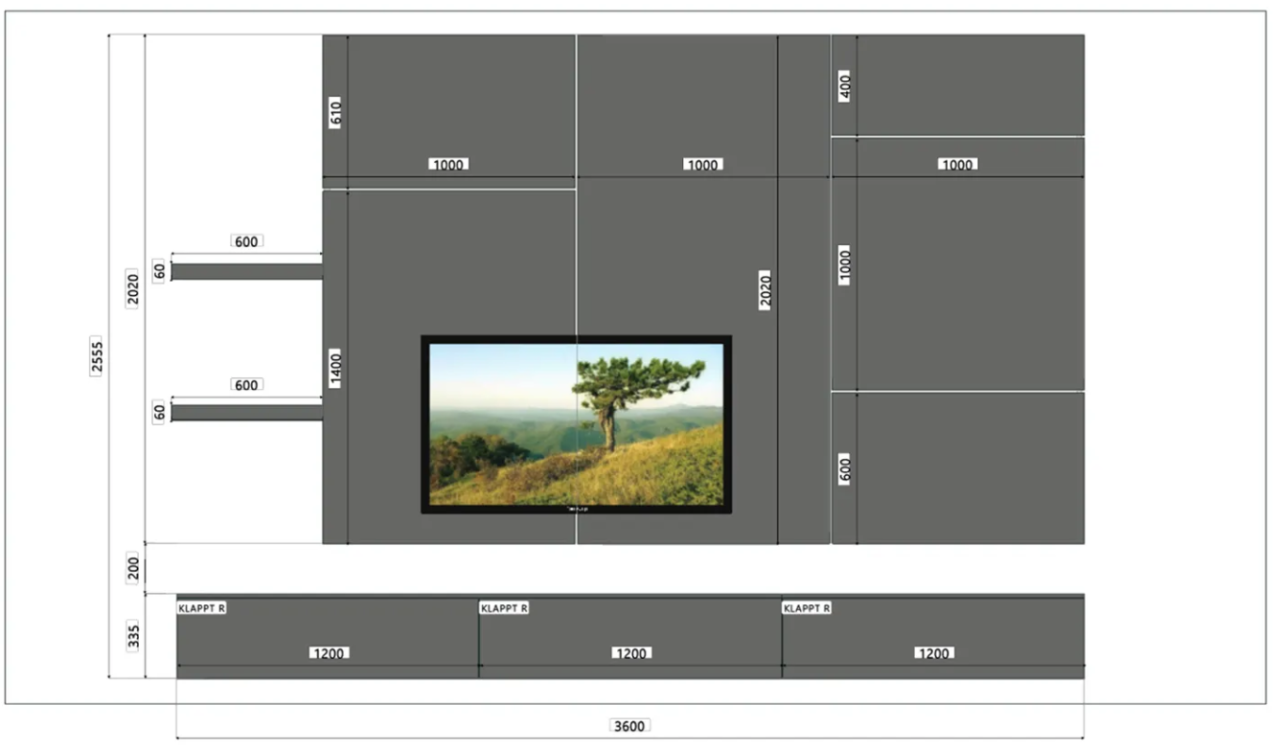TV-Paneel: Breites Paneel (300 cm), perfekt für Fernseher über 65 Zoll.