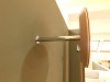 Mit ihrer Höhe von 22,4 cm und einem Durchmesser von 24 cm ist diese Wandgarderobe weder zu klein noch zu groß. Die Oberfläche ist glatt und fällt hinten oval ab. Sie wird durch Distanzstangen an der Wand montiert.