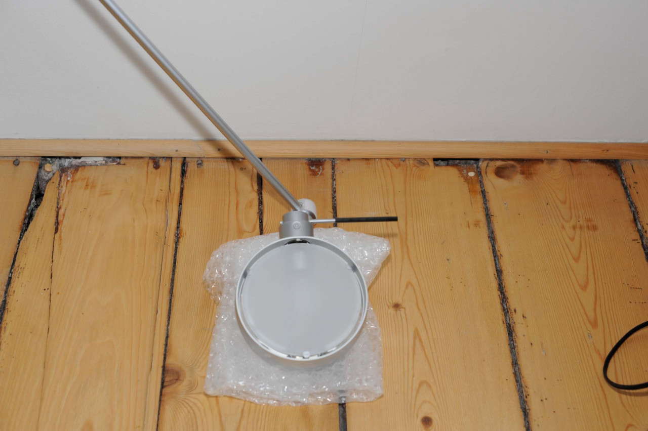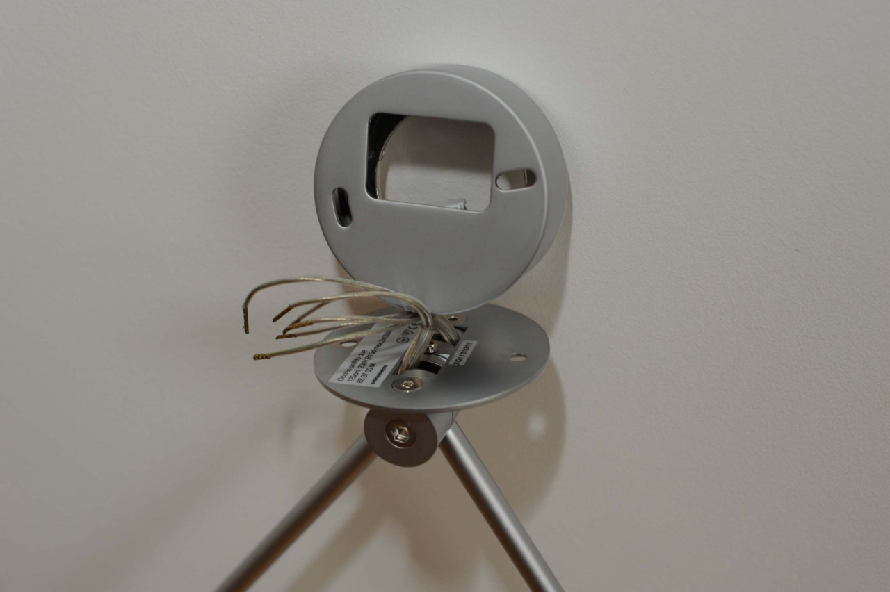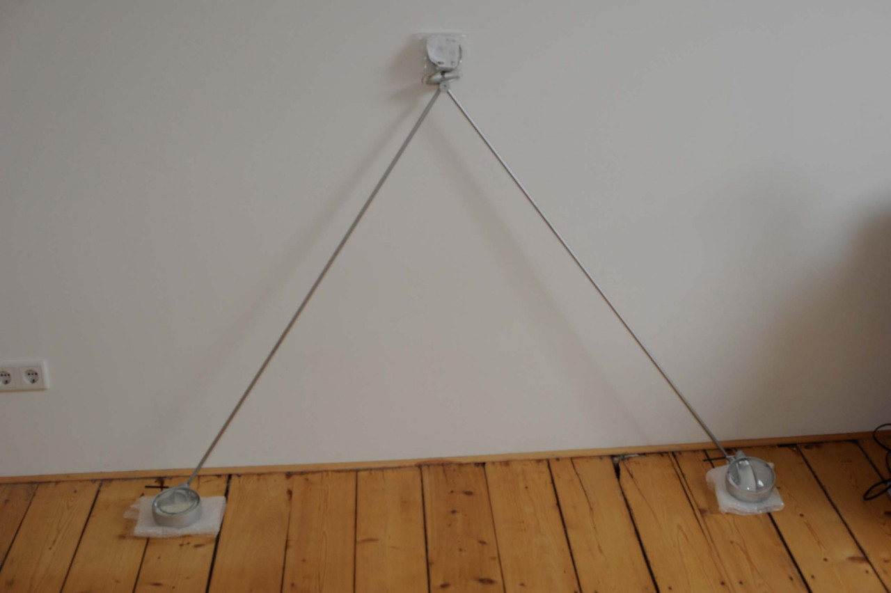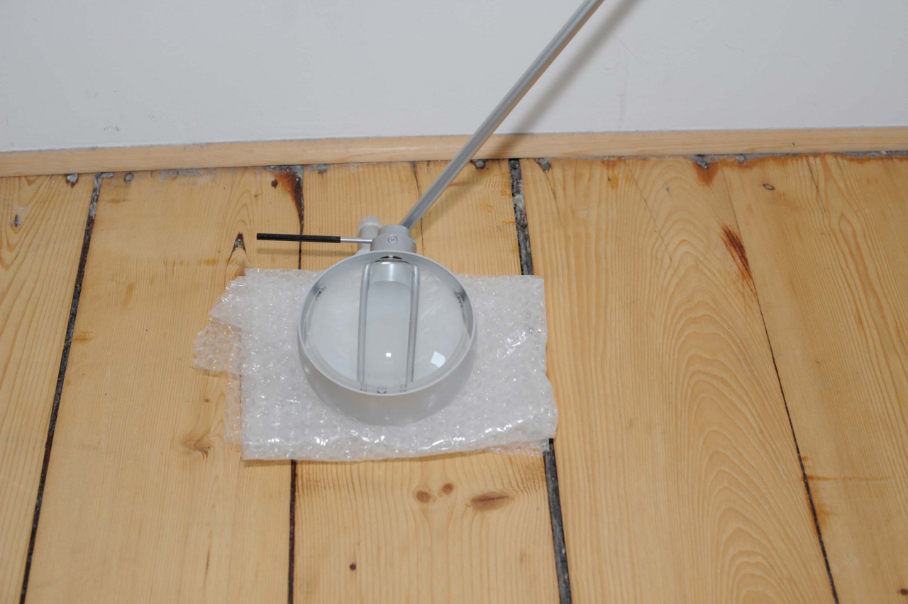 Die Lampe ist kurz benutzt worden und weißt leichte Gebrauchsspuren auf. Das Material ist Chrom matt.