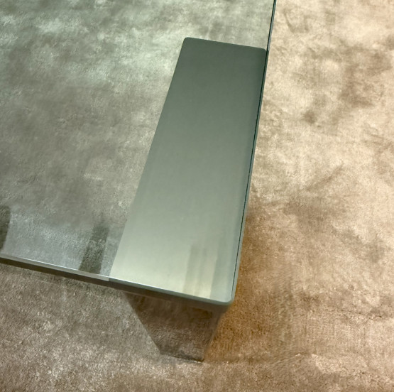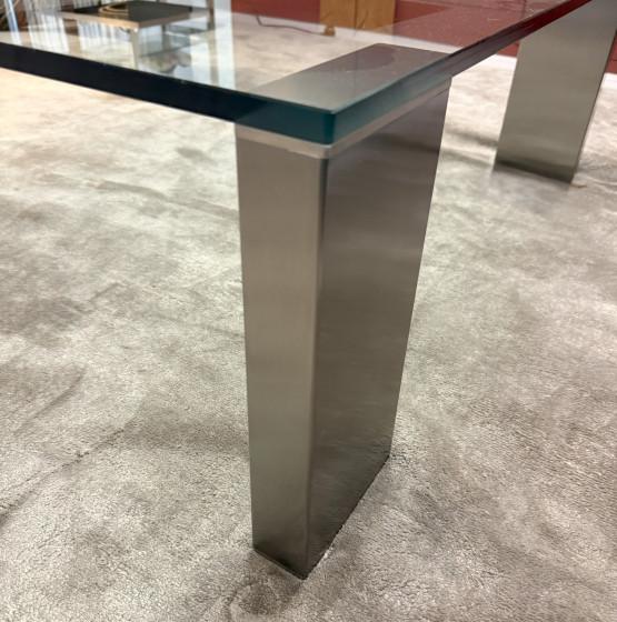 Material: Kristallglasplatte, satiniertes Edelstahlgestell