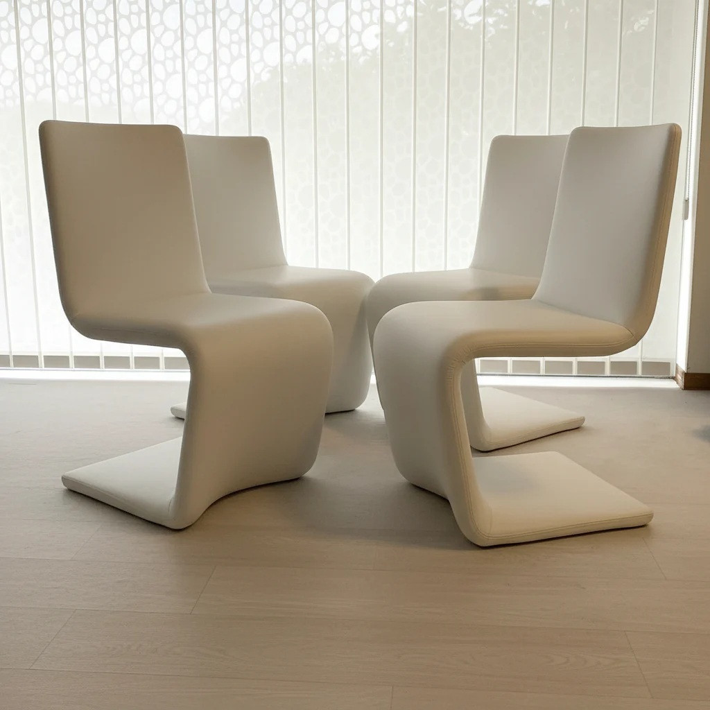 Bonaldo Venere – 4er Stuhlgruppe in Leder Capri Weiß (Ausstellungsstück)