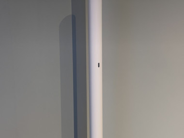 Eine Stahlplatte schirmt ab und gibt ein weiches indirektes Licht nach oben ab, zusammen mit einem diffusen Licht entlang der vertikalen Öffnung der Leuchte.