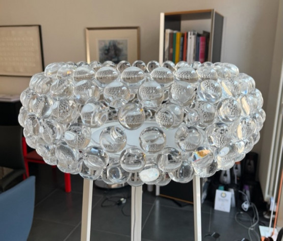 Die CABOCHE PLUS ist die Weiterentwicklung der bis vor 2 Jahren produzierten Halogenstehleuchte CABOCHE. Neben der Ausführung in zeitgemäßem LED-Licht ist auch die Aufhängung und Anordnung der Acrylelemente verbessert worden.